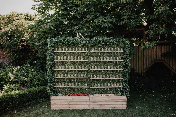 Dekoracyjna ściana z ulubionym trunkiem. Idealna na plenerowe przyjęcie.