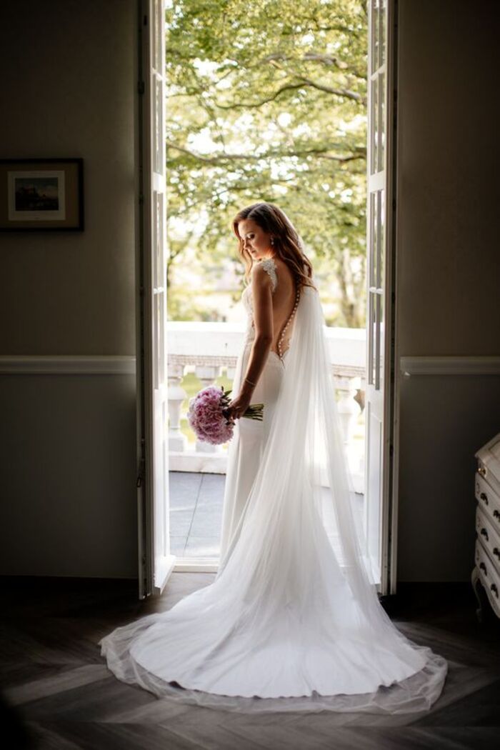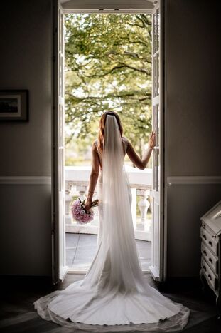 Klasyczny, długi welon to piękne dopełnienie ślubnej stylizacji.