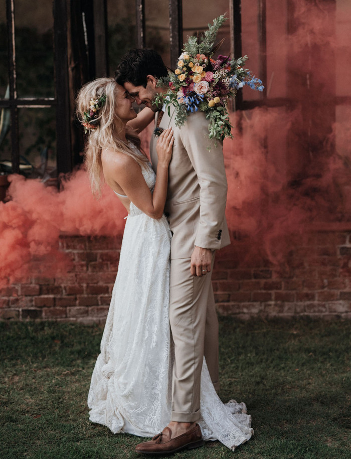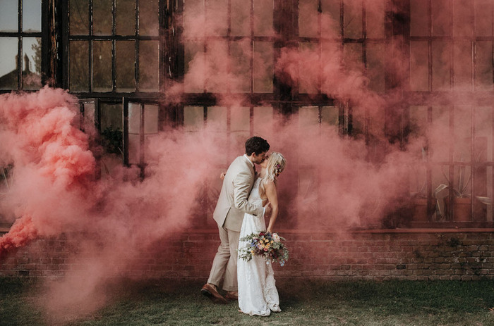 Kolorowy dym – świetny gadżet wykorzystywany w sesjach ślubnych!