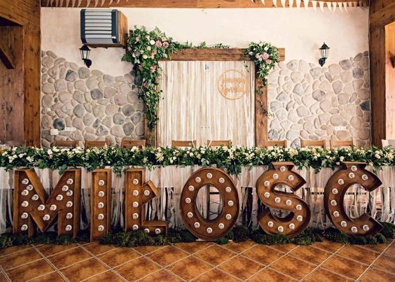 Rustykalny minimalizm.Drewniany napis do dekoracji stołu Pary Młodej