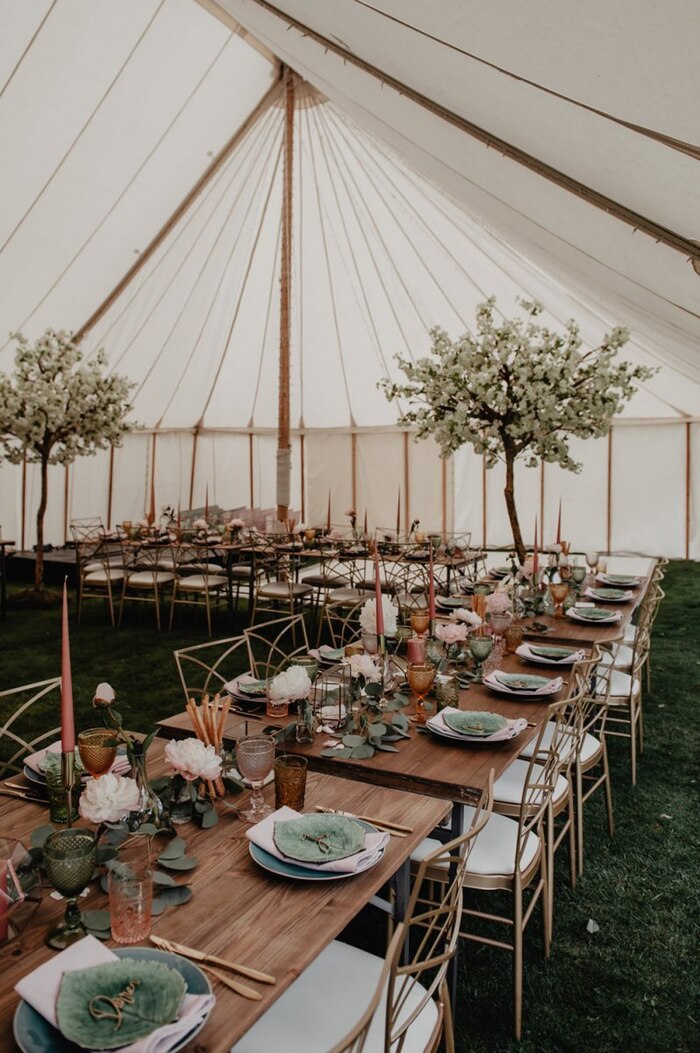 Wesele w namiocie to rozwiązanie dla tych par, którzy marzą o przyjęciu w otoczeniu natury. Szum wiatru, ciepłe promienie słońca, pachnące w ogrodzie kwiaty – taka sceneria z pewnością urzeka. Aby zaplanować wesele w namiocie należy jednak zadbać o wiele kwestii organizacyjnych.